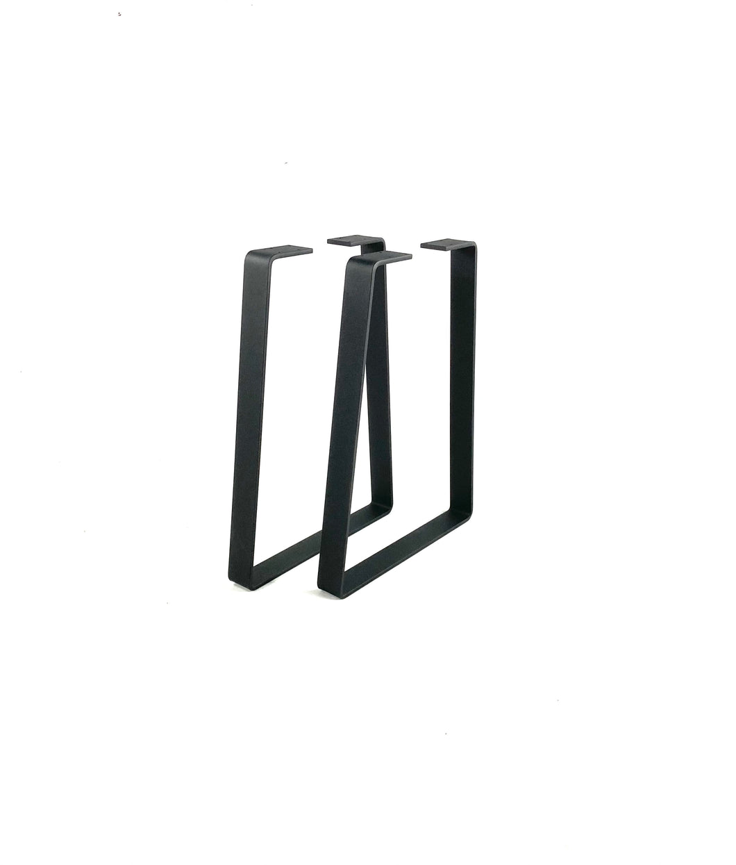 These steel trapezoid desk legs are ready to attach on to your favorite custom desk top, work table, reclaimed plank, or live edge slab! They are finished in a satin, textured black powder coat, are extremely sturdy, and would add a sleek touch to your home, loft, or office. These legs are sold as a SET OF TWO. Custom sizes are available--send us a message.