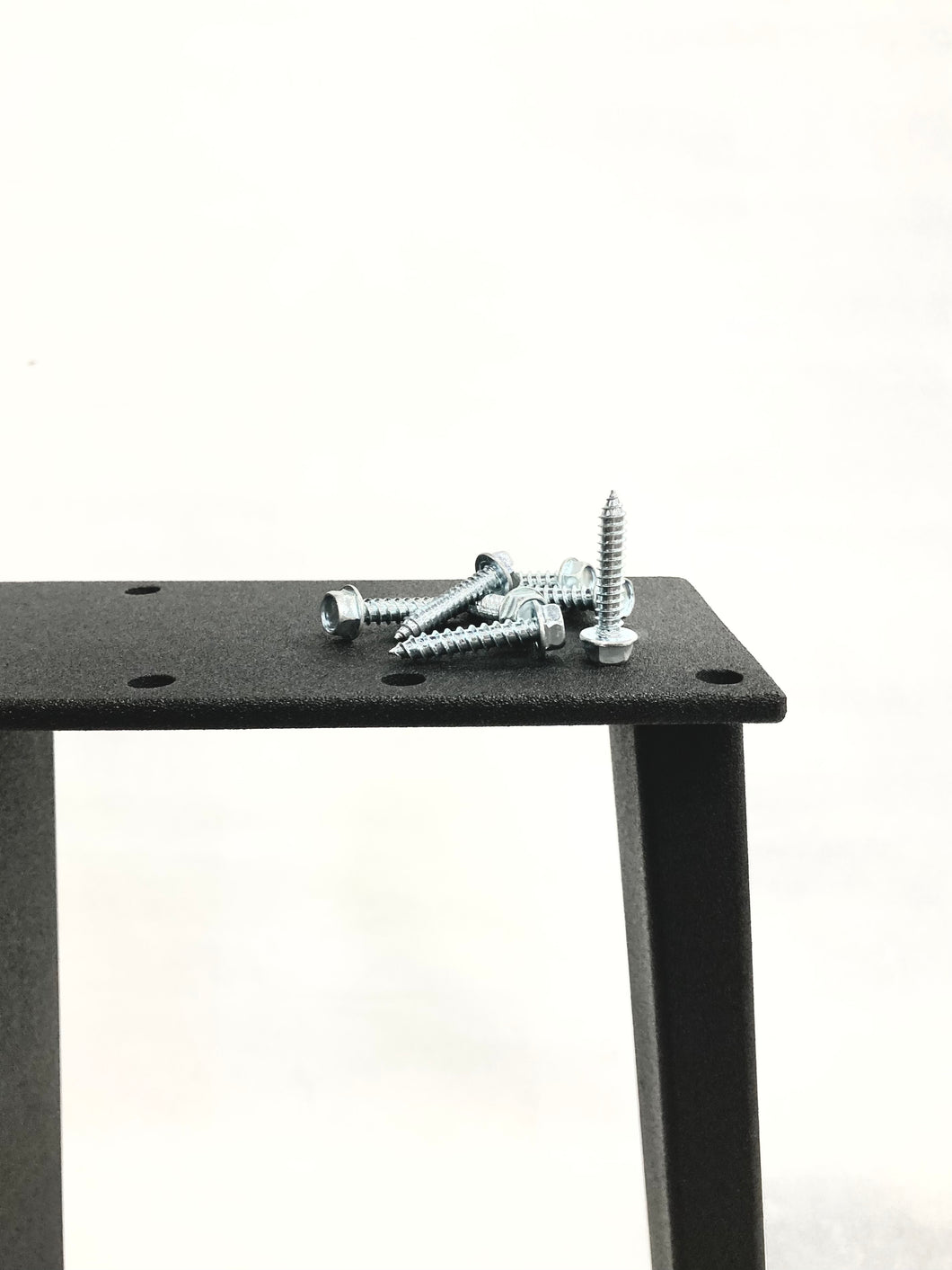 -Mounting hardware is included - 1.25" x 1/4" hex head lag screws - with 6 - 8 mounting holes per leg depending top width.